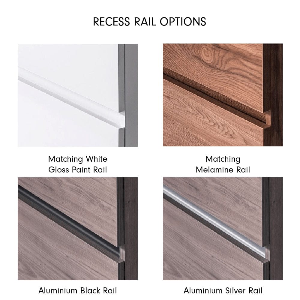 Please contact us when ordering this vanity to confirm your paint/melamine finish, basin option and recess rail option.