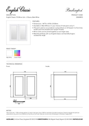 Create the timeless interior you have always wanted with our new English Classic mirror cabinet. With its soft, rounded edges and matte english white New Zealand-made cabinetry, it is a unit to fit all classic interiors.