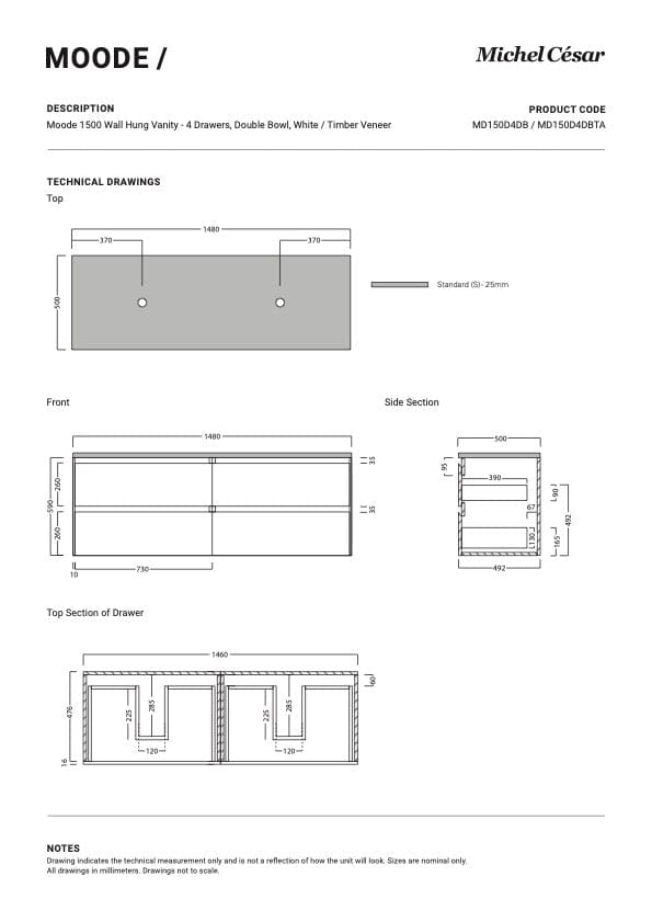 Dimensions: 1480mm W x 500mm D x 500mm H