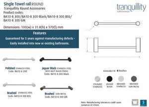 A stylish and distinctive range of round accessories to complement the Tranquillity round heated towel rails.