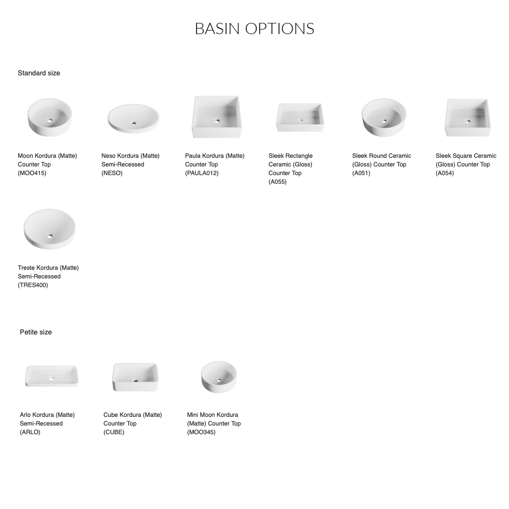 Vanity Sizes (mm): 600/800/900/1050 & 1200