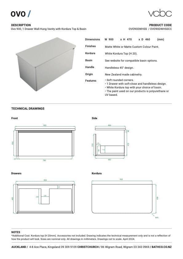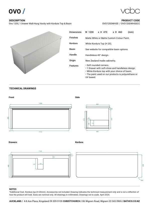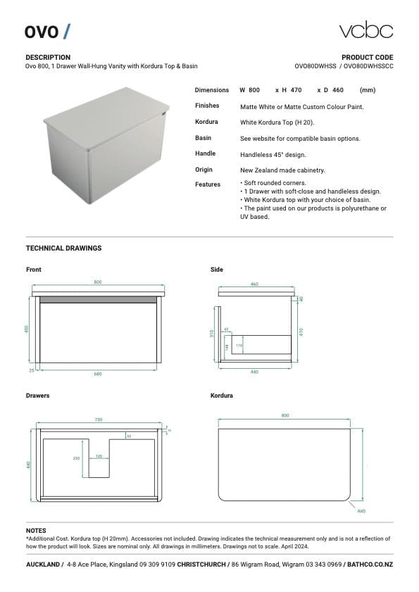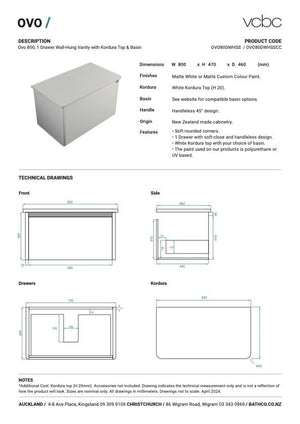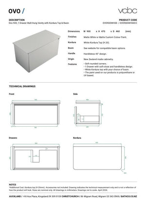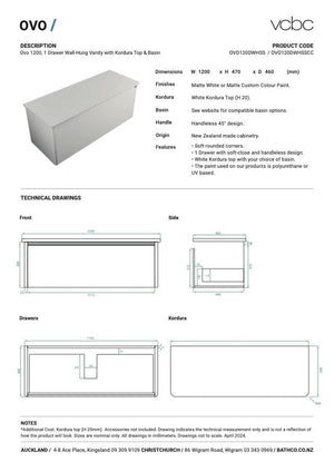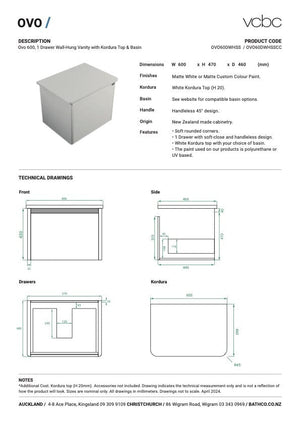 Embrace the soft curves of the Ovo vanity with modern matte custom colour or matte white paint finish, to create a truly effortless space to enjoy and relax in. Available in various sizes & configurations, with your choice of ceramic top with integrated basin or a Kordura top with your choice of basin.
