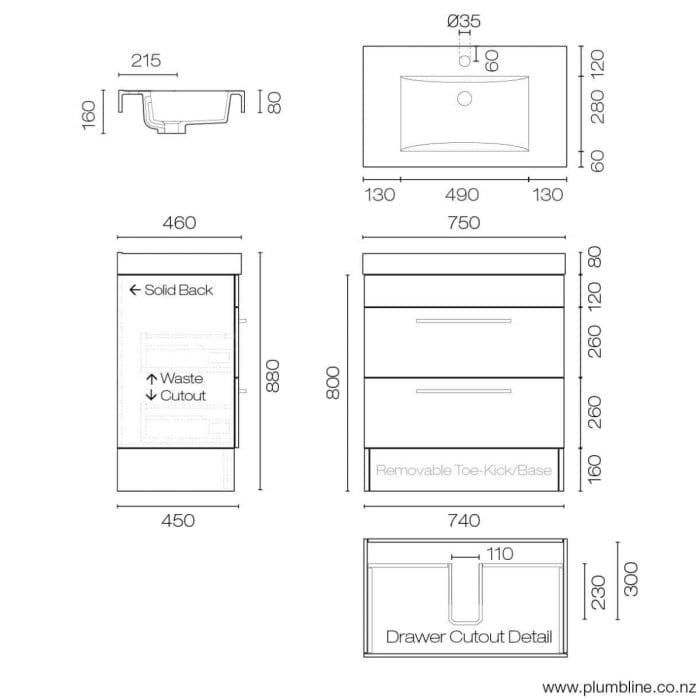Mia Plus 750 Vanity | 2 Drawers