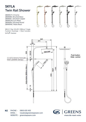 The Skyla shower collection is the perfect complement to any new bathroom or ensuite where a soft square match to your tapware and fittings is required. Featuring the Greens AirFlo® shower technology which pulls air into the handset and then mixes that air into the water stream, filling the water droplets with tiny bubbles of air to create a wonderful invigorating spray.