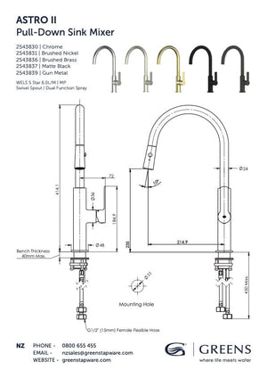 The Astro II range is designed to offer both form and function. With a timeless, yet contemporary look, this range will match any home’s style, giving that perfect finish to your kitchen or bathroom. The Astro II range is available in chrome, brushed brass, brushed nickel, gunmetal and matte black.