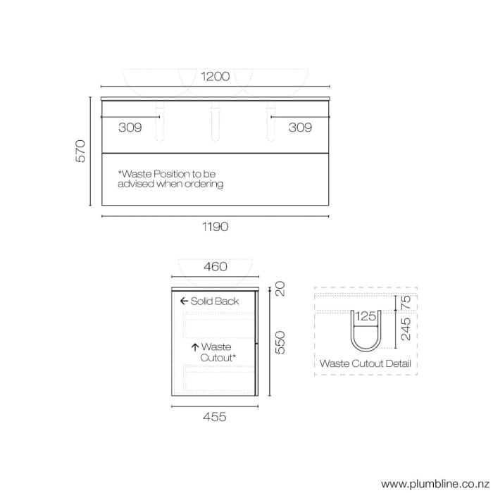 • No taphole or waste cut out (can be drilled onsite with drill bit supplied)
