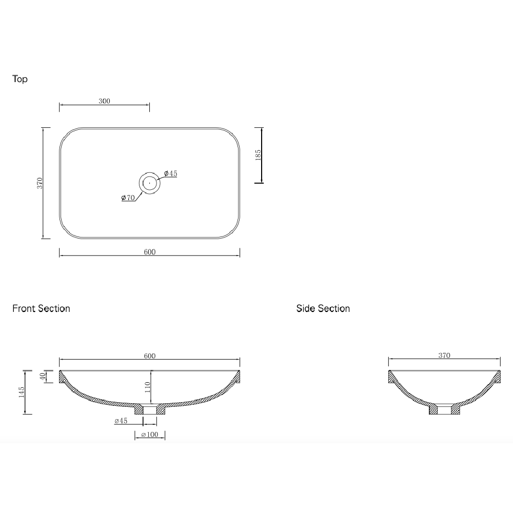 Dimensions: 600mm W x 145mm D x 370mm H